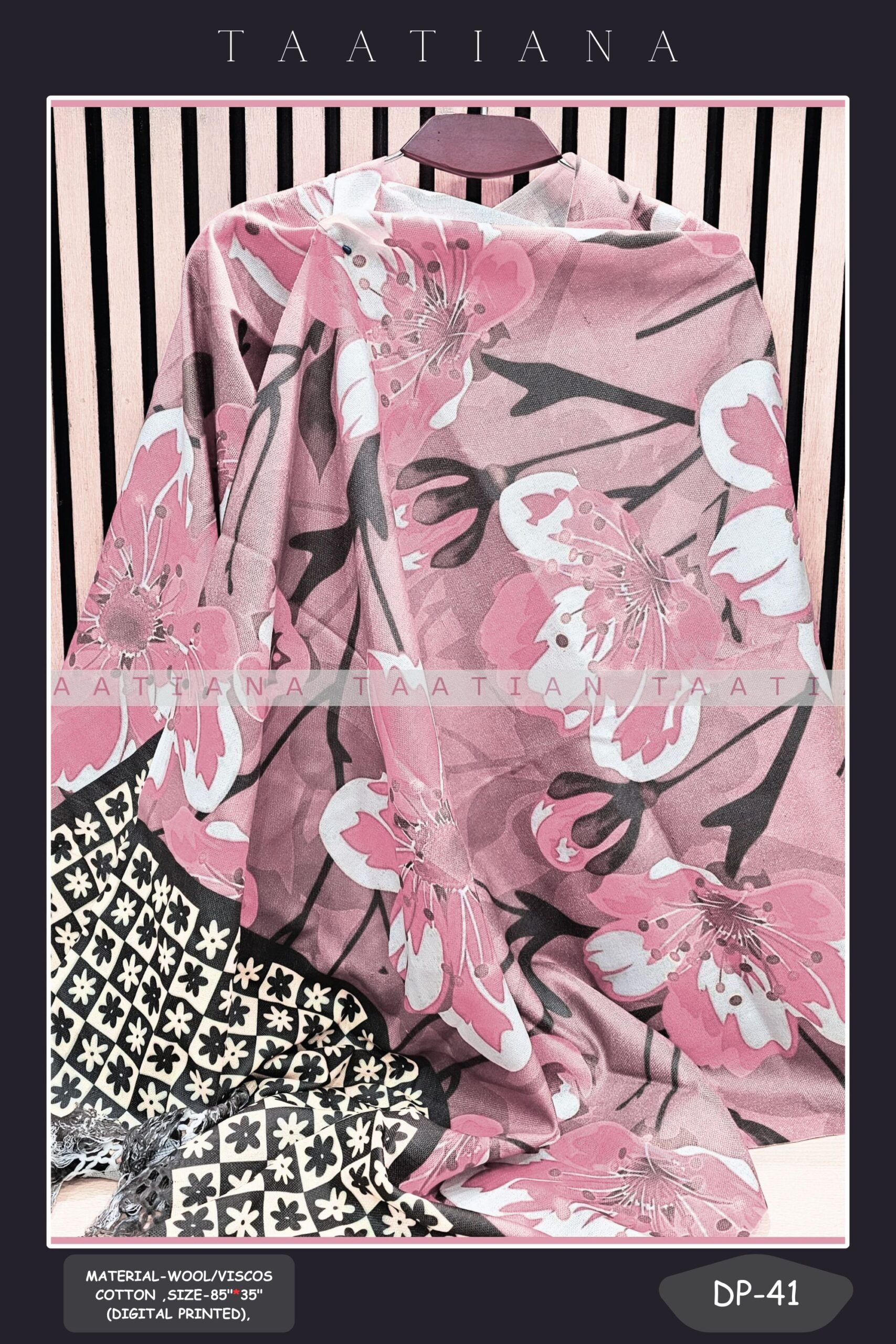 তাঁতে বুনা ওল/ভিস্কস, ডিজিটাল প্রিন্টেড। লম্বাঃ ৮৫ ইঞ্ছি, চওড়াঃ ৩৪ ইঞ্ছি